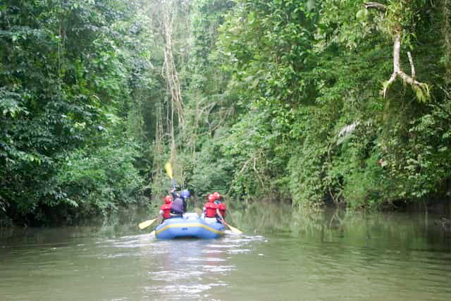 A 2 hours ride in rafts trough the beautiful and nature rich lower Sarapiquí and its tributaries from the Braulio Carrillo National Park.